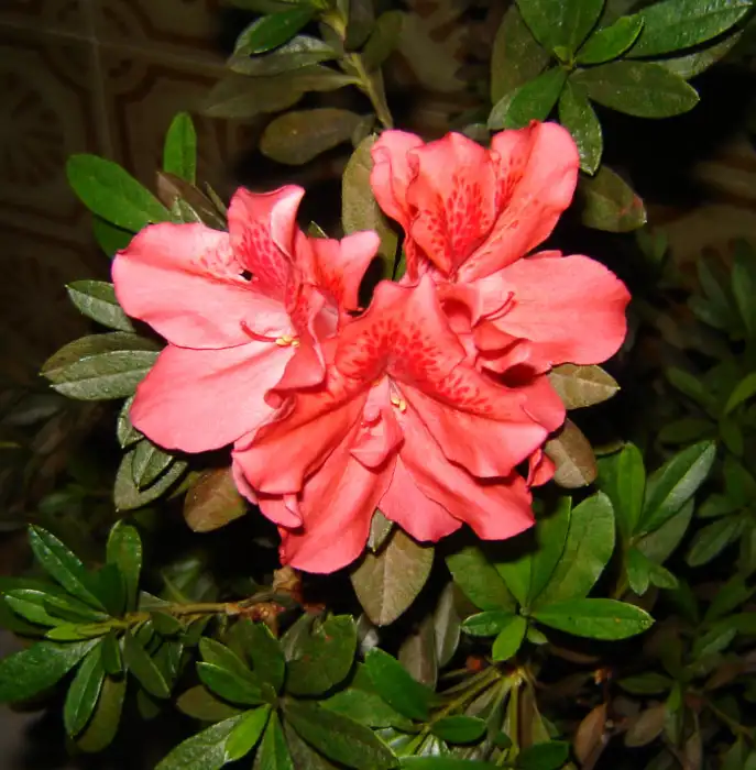 Varieties based on the species (Rhododendron simsii) Azalea simsii are common as flowering indoor plants.