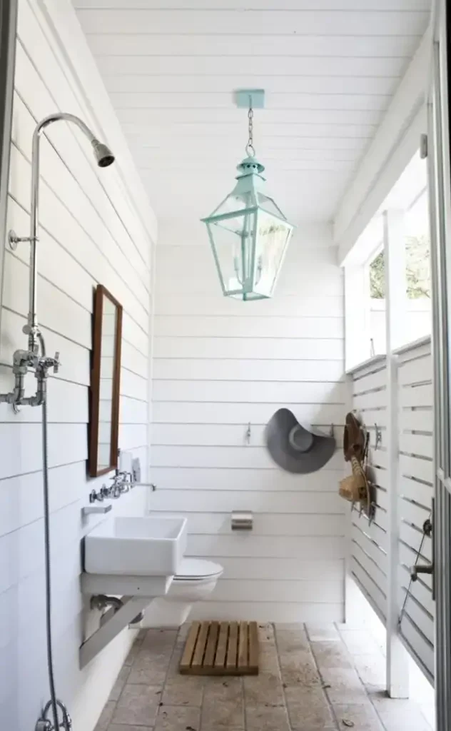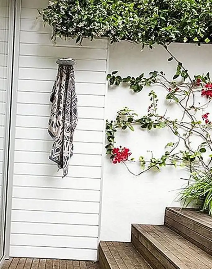 This idea shows how you can use a small corner in the exterior of the house to install a shower head. You don’t have to install new plumbing, just extend it from the inside of the house.