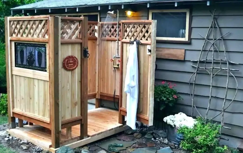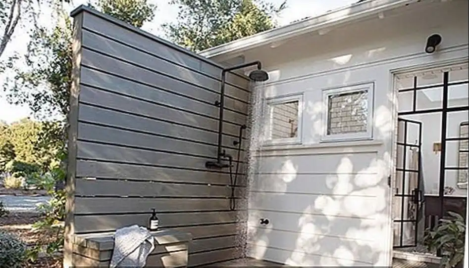 Using an outdoor shower can effectively reuse your yard’s wastewater without having to add a new drainage system that separates gray and black water in your home.