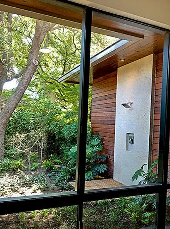 Outdoor showers have many benefits, especially for those who spend a lot of time outdoors. If you come inside after a day of mud and sweat, boating, paddle boarding at the beach, or hiking, just shower outside, cleansing your body of sand, stains, and dirt before you go inside.